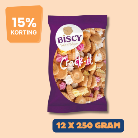 Biscy Crack-it combineert een heerlijk krokant koekje met zachte, zoete toefjes voor de ultieme snackbeleving. Een traktatie die precies de juiste balans biedt tussen knapperig en zoet.