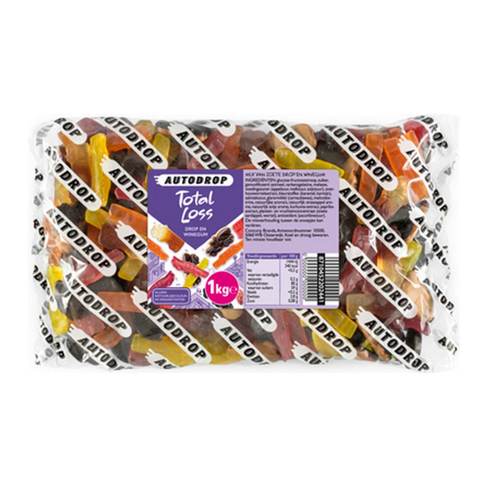 Autodrop total loss is een luxe mix van 11 smaken gemengde drop en fruitgum. Met deze grote chaos aan heerlijke autodropjes ben je totaal verkocht.