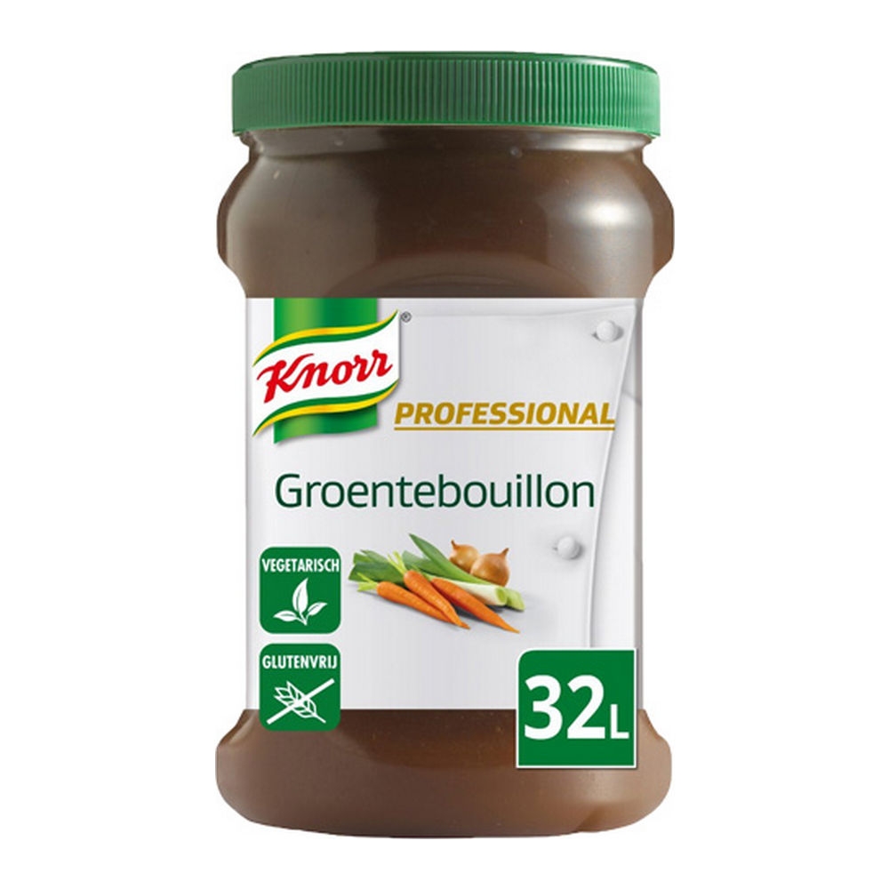 Knorr Professional groentebouillon is natuurlijk van smaak door gebruik van ingrediënten van hoge kwaliteit. Een mooie basis voor soep, om te pocheren of voor de bereiding van bijvoorbeeld risotto. Door de helderheid van de bouillon ook te gebruiken als consommé. De bouillon is glutenvrij en daardoor voor de meeste gasten geschikt. De opbrengst is 32 liter.