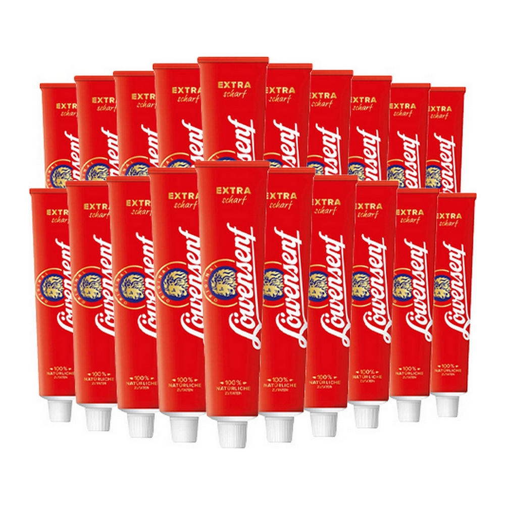 Löwensenf Extra is sinds 1920 synoniem voor hete mosterd. Gemaakt van slechts vier natuurlijke ingrediënten: Mosterdzaad, Gedistilleerde Azijn, Drinkwater en Zout. De unieke pittigheid van de Extra wordt uitsluitend bereikt door het bruine mosterdzaad en de verwerking ervan volgens het traditionele Dijon-proces - er zijn geen andere toevoegingen vereist. Het is dus geen wonder dat onze extra de onbetwiste marktleider is onder de "pittige". Hij is zelfs tot ver buiten de grenzen van Duitsland bekend en geliefd. De dapperen eten het rood extra puur als dipsaus bij worst of biefstuk, anderen zweren bij de extra kick bij het koken.
