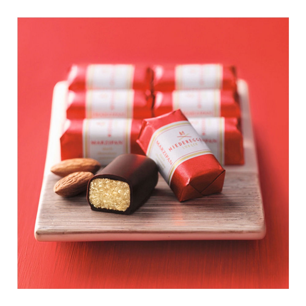Delicate Niederegger marsepein chocolade met 71% marsepein. Dit is het perfecte cadeau voor alle liefhebbers van marsepein. Hoogwaardige marsepein verfijnd met delicate donkere chocolade.