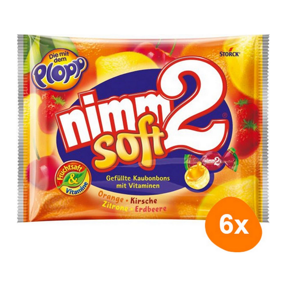 Nimm2 soft � degene met de pop. De Snoepjes met de pop zijn gewoonweg geweldig! Nimm2 soft zijn superlekkere kauwsnoepjes met vruchtensap en vitamines. Gevulde kauwsnoepjes met vitamines - dit zijn de kauwsnoepjes met fruit en de goedheid van Nimm2. Ze zijn leuk, rond en heerlijk gevuld met vruchtensap en vitamines! Met de 4 soorten sinaasappel, citroen, aardbei en kers biedt Nimm2 soft een unieke en vooral superleuke kauwervaring.