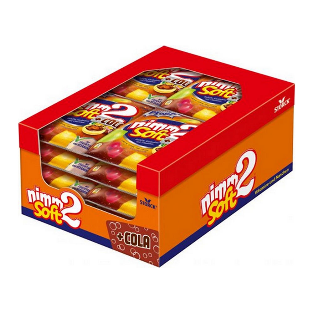 Cola en plopp. De heerlijke Nimm2 Soft Fruit & Cola combineert twee populaire kauwsnoepjessmaken tot een onweerstaanbare combinatie. De ronde kauwsnoepjes in een zoete bolvorm bestaan ??uit een fruitige schil die gevuld is met een sappige colakern. Een zoete en pittige traktatie die variatie biedt in vier smaken.