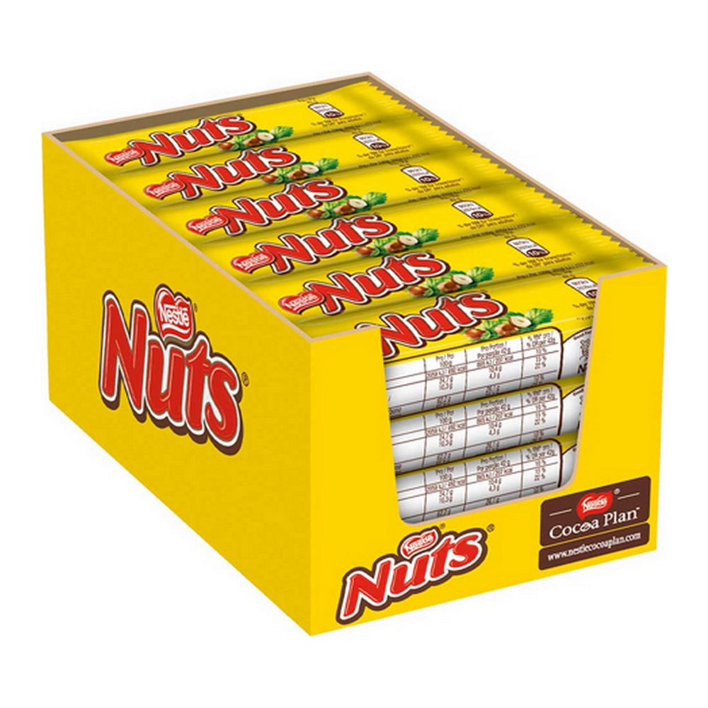 Nuts Single is een stevige chocolade reep met een rijke combinatie van zachte nougat, een laagje karamel en knapperige hazelnoten omhuld in melkchocolade.