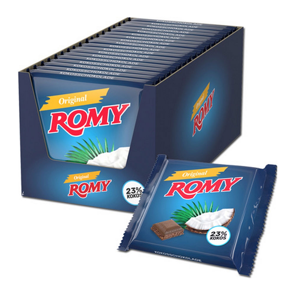 Niemand heeft meer kokos: 23%. ROMY Original is een klassieker op het zoetwarenschap. Met ROMY Original ontmoeten geroosterde kokosvlokken exquise cacao. Dankzij ROMY Original is de zomer voor iedereen altijd binnen handbereik.