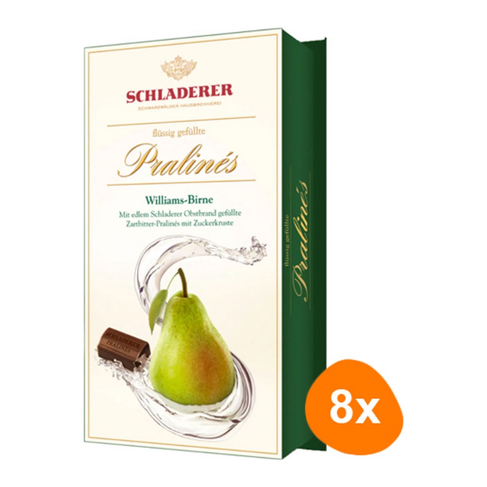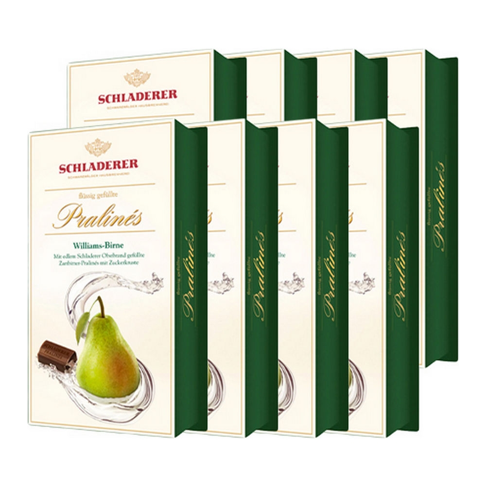 Schladerer fijne Williams-perenvruchtenbrandewijn in harmonieuze combinatie met de flinterdunne chocoladecoating gemaakt van de beste cacaovariëteiten maakt de Schladerer-pralinés tot een unieke smaakbelevenis.