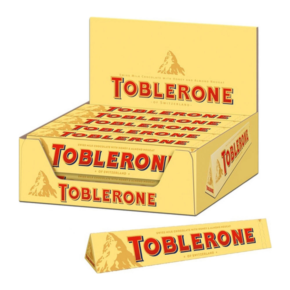 Toblerone is een zwitserse chocolade reep met honing en amandel nougat. In 1908 gecreeerd door theodor tobler en nu is Toblerone over de hele wereld beschikbaar. Je herkent Toblerone aan de unieke berg-achtige vorm en de feestelijke verpakking. Ideaal als cadeau of om heerlijk zelf van te genieten.